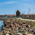 A Napospart városközpontjától kevesebb mint 1 km-re található tengerparti Charis Cozy Family Apart At Sun Village Complex Close To The Beach Napospart apartman kilátást nyújt a kertre. Az apartman rendelkezik úszómedencével és medencére néző kilátással a teraszról.